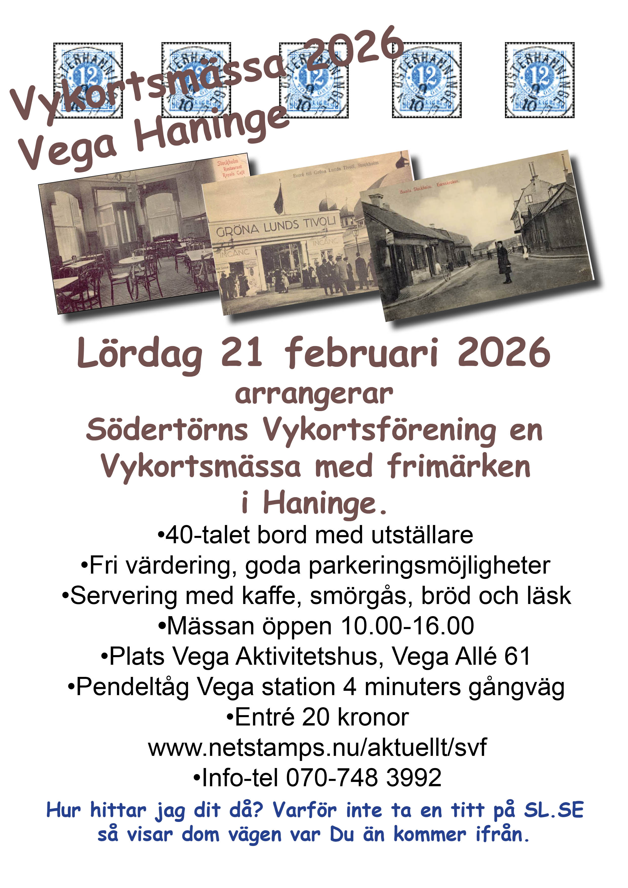 Bloggen Netstamps kan vykort: Här hittar hittar du info om Netstamps och även om Södertörns Vykortsförening. Mycket vykort, info om mässor osv. Var ned och rösta i vår undersökning om Hur kommer vykortssamlandet att se ut under 2025 tror Du? Undersökningen finns i bloggen.