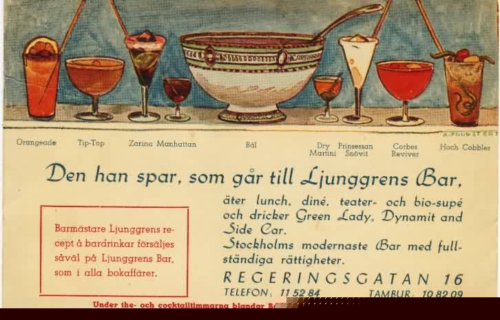 Ljungrens Bar Regeringsgatan 16. Det var hit man gick här att umgås på det nya moderna Amerikanska sättet, #R