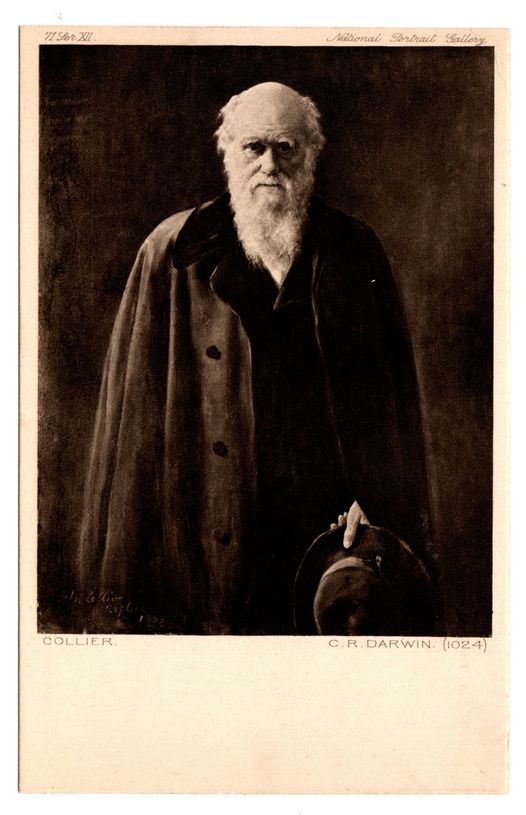 Porträtt av Charles Darwin på ett vykort från National Portrait Gallery, London
