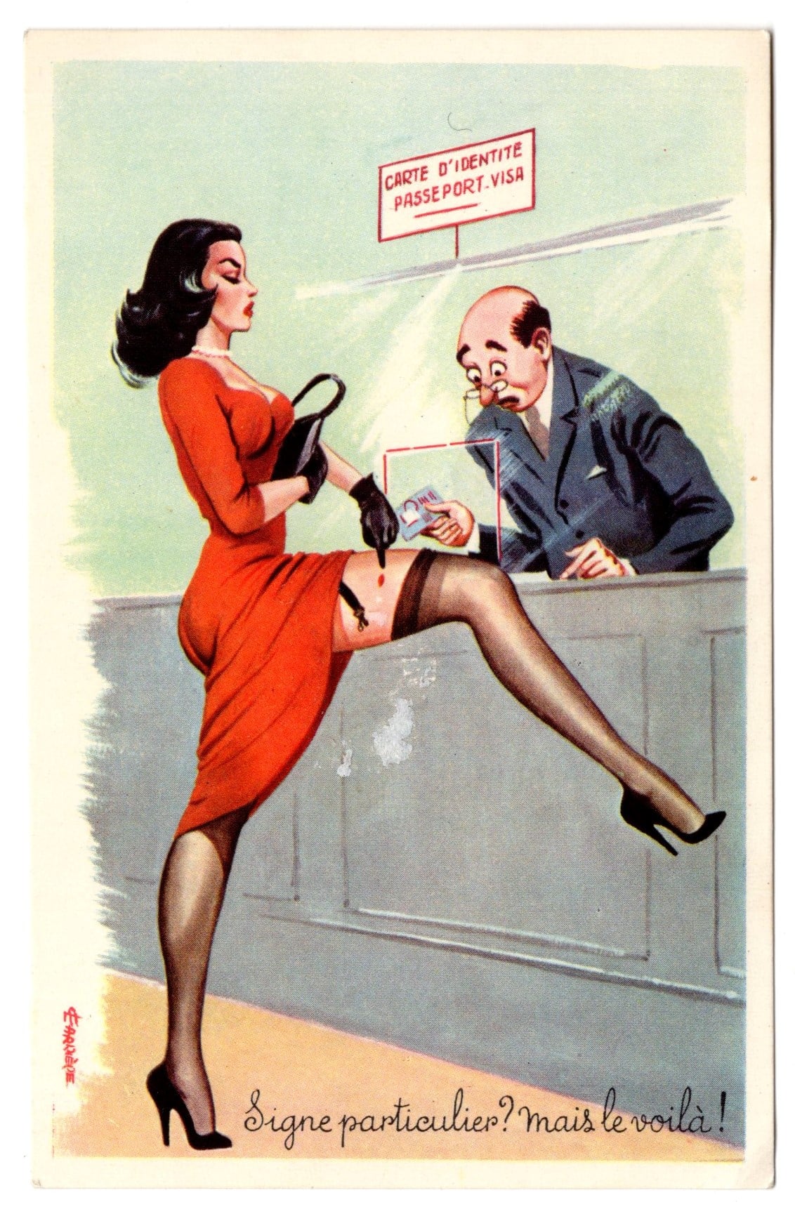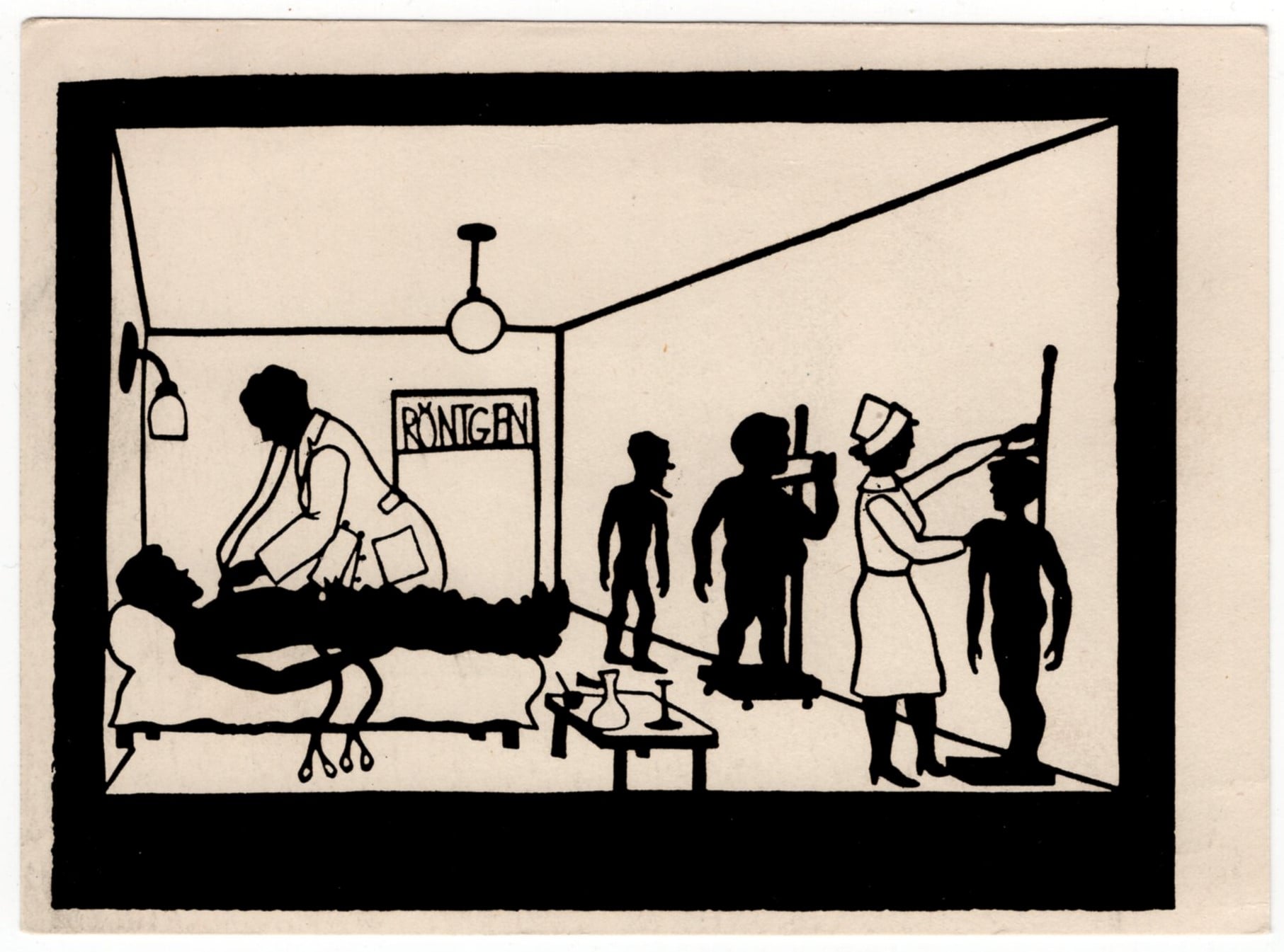 Det finns ett antal vykort av vilka det bifogade synes vara ett gott exempel - minimalistiskt, med glimten i ögat, på väg in Art Deco.