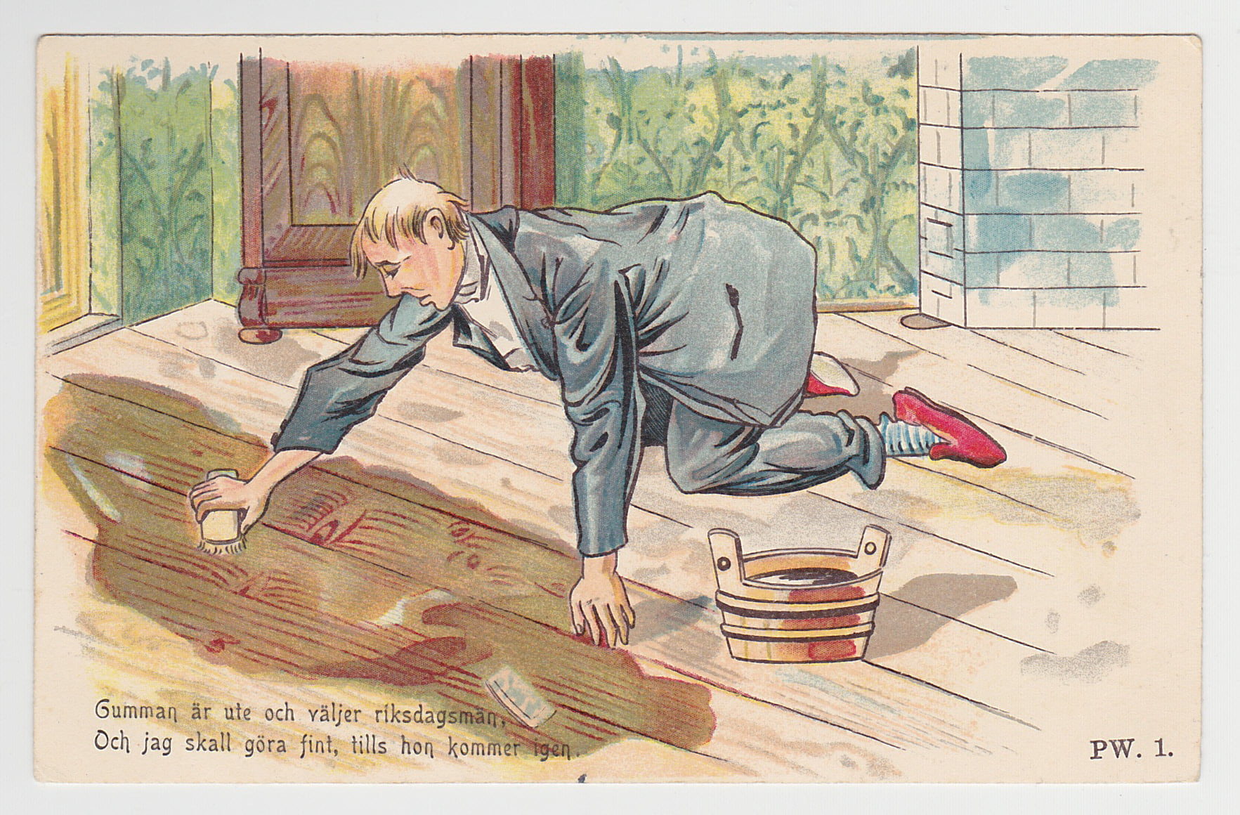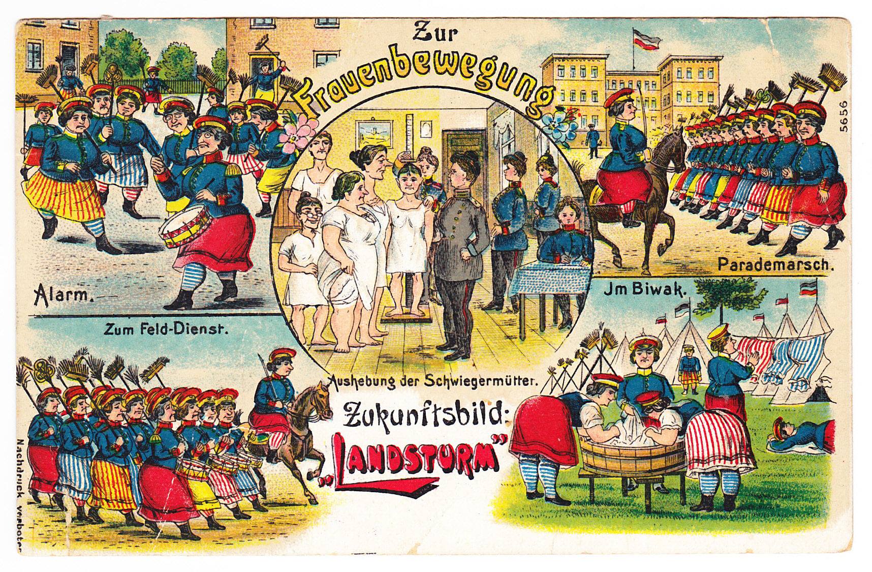 Den 8 januari lär norra Grekland fira Gynaikokratia, en festival där män och kvinnor för en dag byter roller. Runt 1900 när kampen om kvinnors rösträtt började hetta till skämtades det en hel del om detta på vykort - oftast inte på ett sätt som idag kan uppfattas som PC.