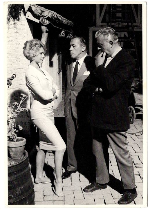 På vykortet ses han tillsammans med den legendariske TV-show värden Ed Sullivan och BB, Brigitte Bardot.