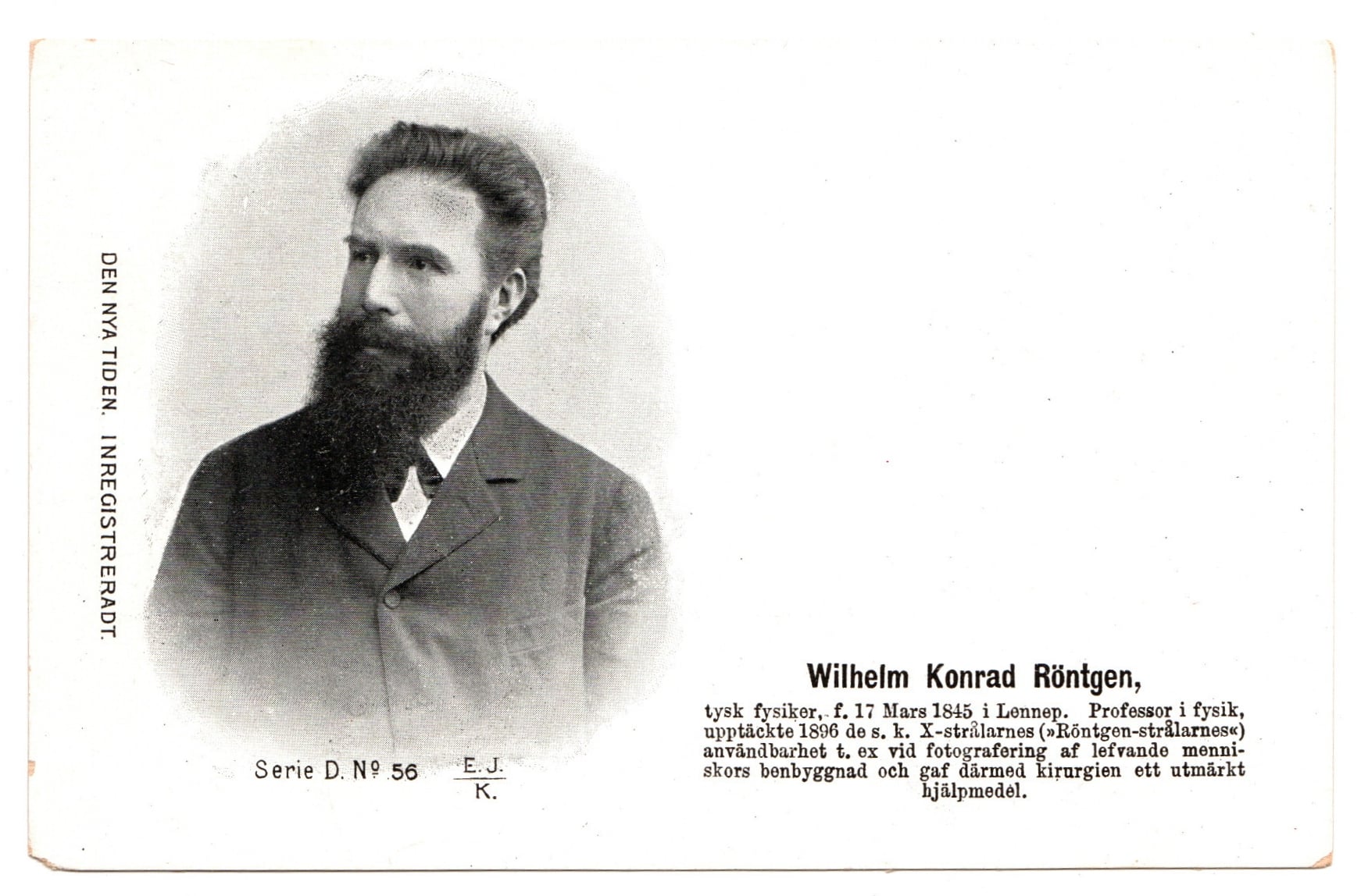 8 november 1895 – Wilhelm Röntgen upptäcker röntgenstrålningen som 1901 leder till att han blir den förste att ta emot Nobelpriset i fysik.