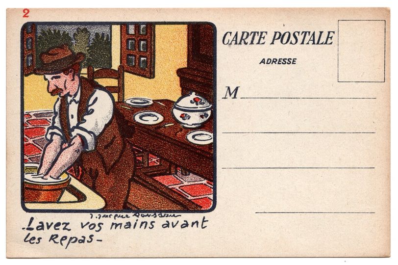 Vykortet är utgivet av en amerikansk organisation med syfte att skydda amerikanska soldater som kom till Frankrike 1917 från tuberkulos. Vykortet skyddade inte bara jänkarna från smutsiga fransmän utan kan haft betydelse för att skydda fransmännen från spanska sjukan som de amerikanska soldaterna misstänks ha haft med sig till Europa.