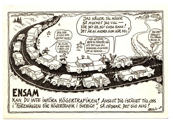 Bertil Almqvist, mannen bakom familjen Hedenhös, gav inte upp för det utan engagerade sig för föreningen för Högertrafik!