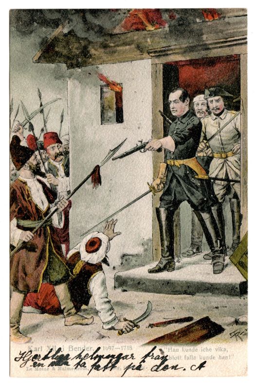 1 februari 1713 – Den osmanske sultanen Ahmed III har nu tröttnat på att ha den svenske kungen Karl XII och hans närmaste soldater boende i staden Bender som sina gäster (vilket de har gjort sedan flykten efter slaget vid Poltava 1709) och efter flera försök att övertala honom att lämna landet försöker han nu med våld. Tillsammans med ett 40-tal karolinersoldater håller kungen stånd mot 600 turkiska soldater i flera timmar i vad som går till historien som kalabaliken i Bender, innan han snavar på sina sporrar och blir tillfångatagen. Avvisningen av svenskarna blir emellertid inte av, men året därpå lämnar Karl XII självmant Osmanska riket och beger sig hem mot Sverige.