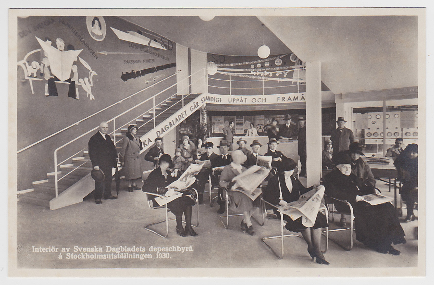 Första vykortet med SvD jag hittade är först från Stockholmsutställningen 1930 där de pietetsfullt har suddat ansiktena på besökarna!
